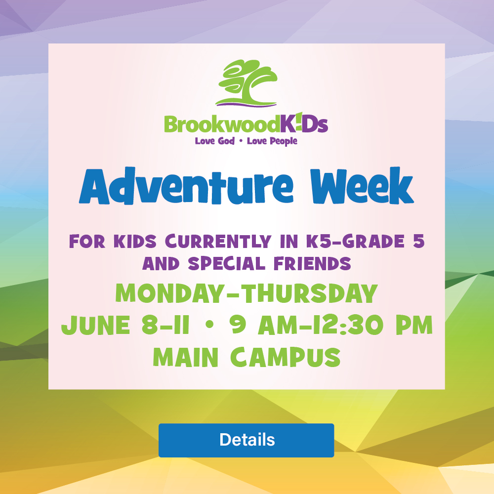 Special Friends are invited to join BrookwoodKids in Adventure Week - a fun-filled, energizing, Christ-centered week.